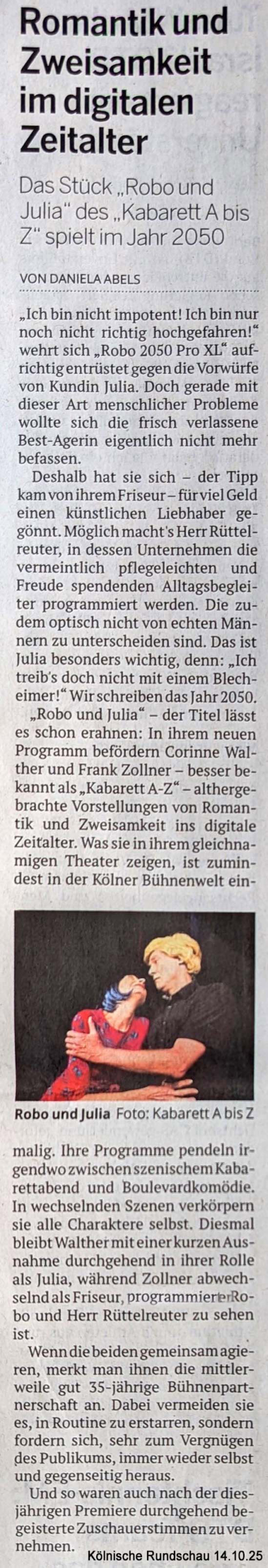 Ex-Mann mit einer Jüngeren durchgebrannt? Kein Problem mehr im Jahr 2050, denn es gibt endlich Roboter, die echten Menschen bis auf’s Haar gleichen. Deshalb entscheidet sich die enttäuschte Julia auf Anraten ihres schrillen Friseurs für Robo, den perfekten Elektro-Lover. Doch der hat nicht nur Witz und Charme, sondern auch einen erotischen Wackelkontakt! Als Julia ihrem Ärger bei der Roboter-Firma Luft macht, stößt sie auf ein Geheimnis, das ihre Gefühle zum neuen Cyber-Partner völlig durcheinander wirbelt! Video HIER